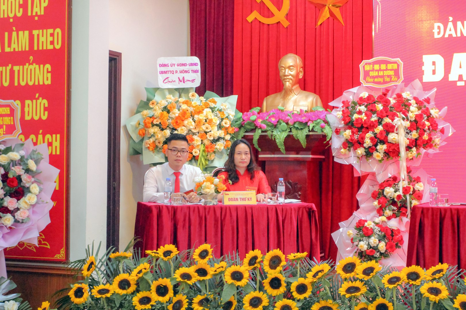 Dự và chỉ đạo Đại hội có: đồng chí Lương Thế Quý – Phó Bí thư Thường trực Quận ủy, Chủ tịch HĐND, đồng chí Chu Đức Anh – Phó Bí thư Quận ủy, Chủ tịch UBND quận An Dương; đồng chí Phạm Hải Nam – Ủy viên BTV, Chủ nhiệm Ủy ban kiểm tra, trưởng Đoàn công tác số 2; các đồng chí trong Đoàn công tác số 2 chỉ đạo Đại hội cơ sở của Quận ủy An Dương; đại diện lãnh đạo, các ban Xây dựng Đảng, quận ủy An Dương; đại diện lãnh đạo Đảng ủy, HĐND, UBND, UBMTTQ phường Hồng Thái; cùng toàn thể 126 đảng viên thuộc 9 chi bộ trực thuộc Đảng bộ Nhà trường.