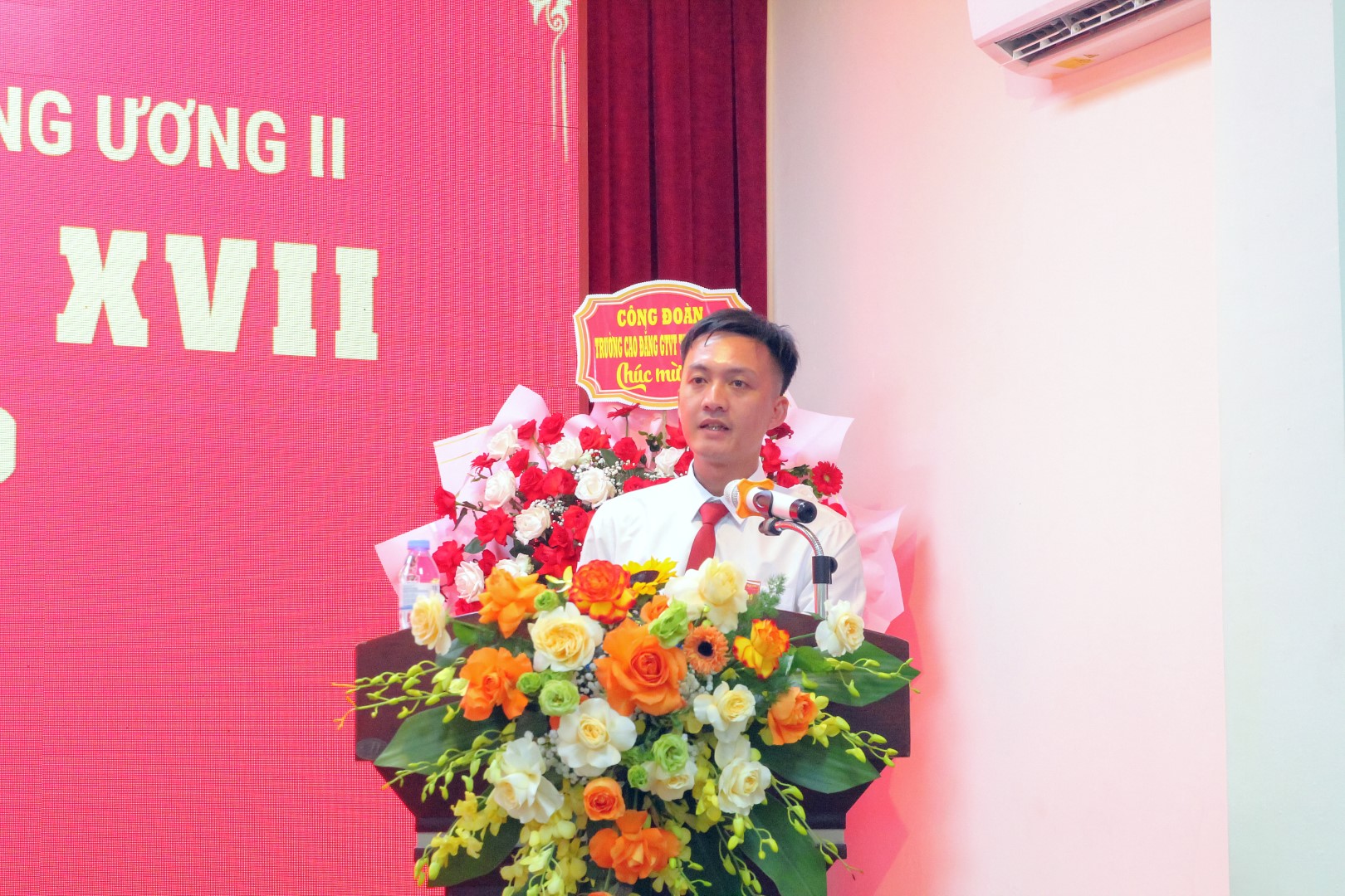 Phát biểu bế mạc Đại hội, đồng chí Nguyễn Văn Tuấn – Bí thư Đảng ủy, Hiệu trưởng Nhà trường nhấn mạnh: “Đại hội Đảng bộ Trường lần thứ XVII là dấu mốc thể hiện sự đoàn kết, thống nhất về tư tưởng, nhận thức và hành động trong toàn Đảng bộ. Mỗi cán bộ, đảng viên cần nâng cao tinh thần trách nhiệm, chủ động sáng tạo, góp phần thực hiện thắng lợi các mục tiêu Đại hội đã đề ra, xây dựng Trường Cao đẳng Giao thông vận tải Trung ương II vững bước trong thời kỳ mới, xứng đáng với truyền thống 60 năm xây dựng và phát triển.”