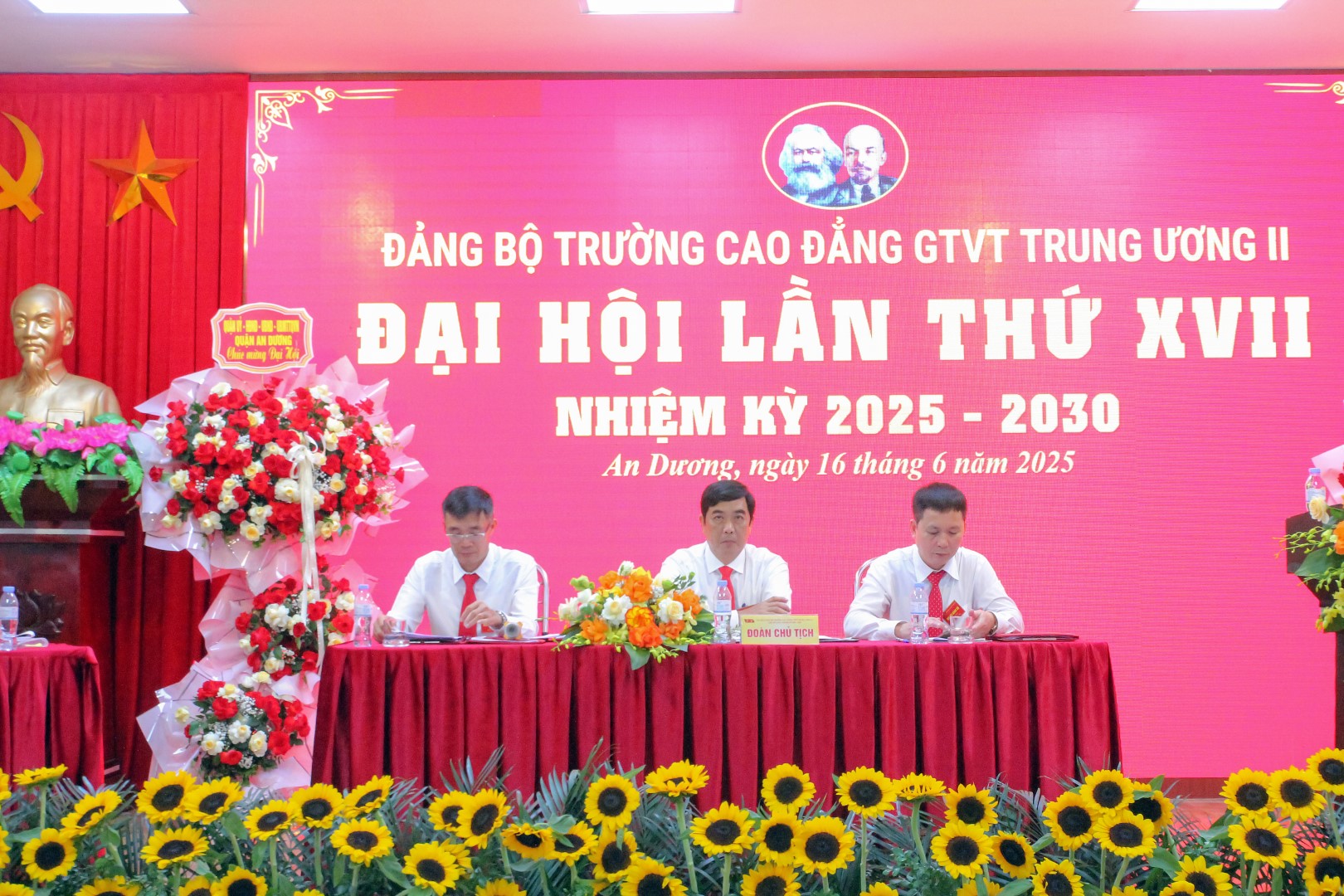 Đại hội Đảng bộ Trường Cao đẳng Giao thông vận tải Trung ương II lần thứ XVII, nhiệm kỳ 2025–2030 đã thành công tốt đẹp. Với niềm tin, khí thế và quyết tâm mới, toàn Đảng bộ Nhà trường sẵn sàng bước vào giai đoạn phát triển mới – đổi mới, hội nhập và bền vững.
