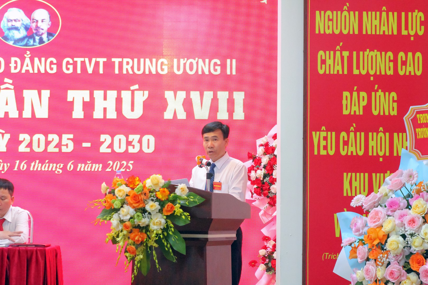 Ngày 16/6/2025, trong không khí thi đua sôi nổi hướng tới Đại hội đại biểu toàn quốc lần thứ XIV của Đảng và chào mừng 60 năm ngày truyền thống Trường Cao đẳng Giao thông vận tải Trung ương II (08/6/1965 – 08/6/2025), Đảng bộ Nhà trường đã long trọng tổ chức Đại hội Đảng bộ lần thứ XVII, nhiệm kỳ 2025–2030.