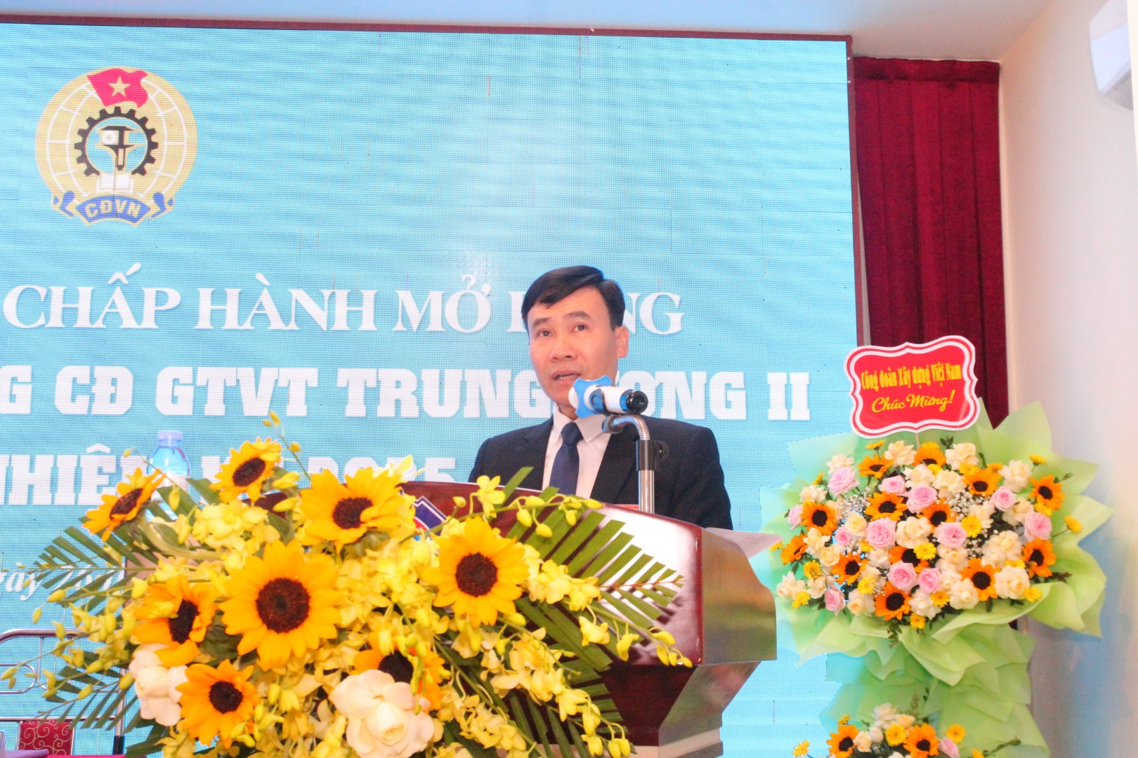 Đồng chí Đoàn Văn Bình – Chủ tịch Công đoàn trường trình bày báo cáo kiểm điểm hoạt động của Ban Chấp hành khóa XIX