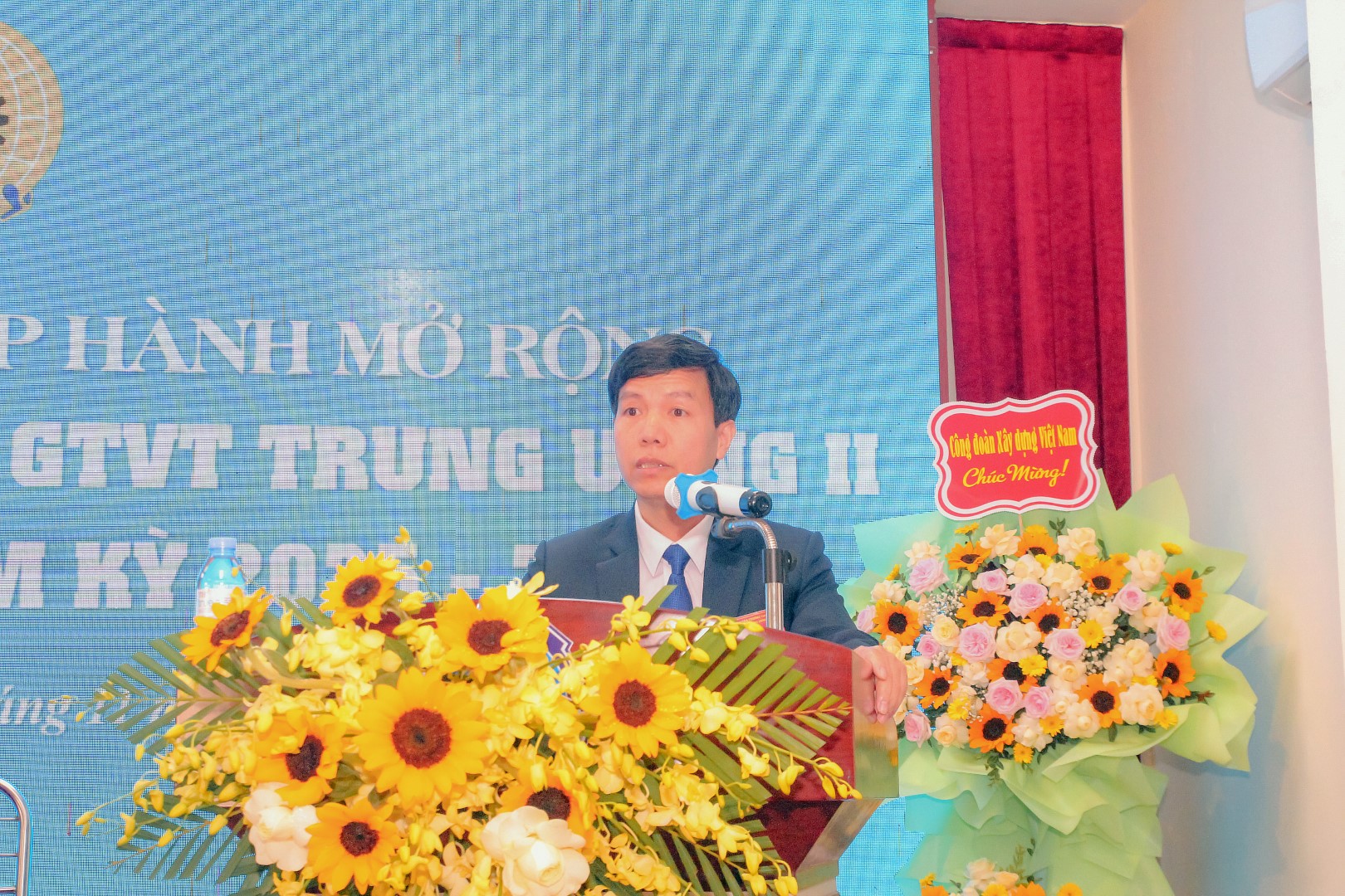 Đồng chí Nguyễn Duy Linh – Phó Chủ tịch Công đoàn trường trình bày báo cáo kết quả hoạt động Công đoàn nhiệm kỳ 2023–2025
